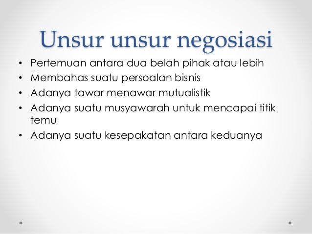 Unsur-unsur negosiasi yang terakhir adalah anda harus memastikan bahwa terdapat komitmen dari kedua belah pihak. Di bawah ini yang bukan merupakan unsur unsur yang harus ada dalam negosiasi ialah a. Mulai dari pengertian unsur-unsur ciri-ciri kaidah kebahasaan struktur tujuan dan faktor penentu keberhasilan negosiasi.