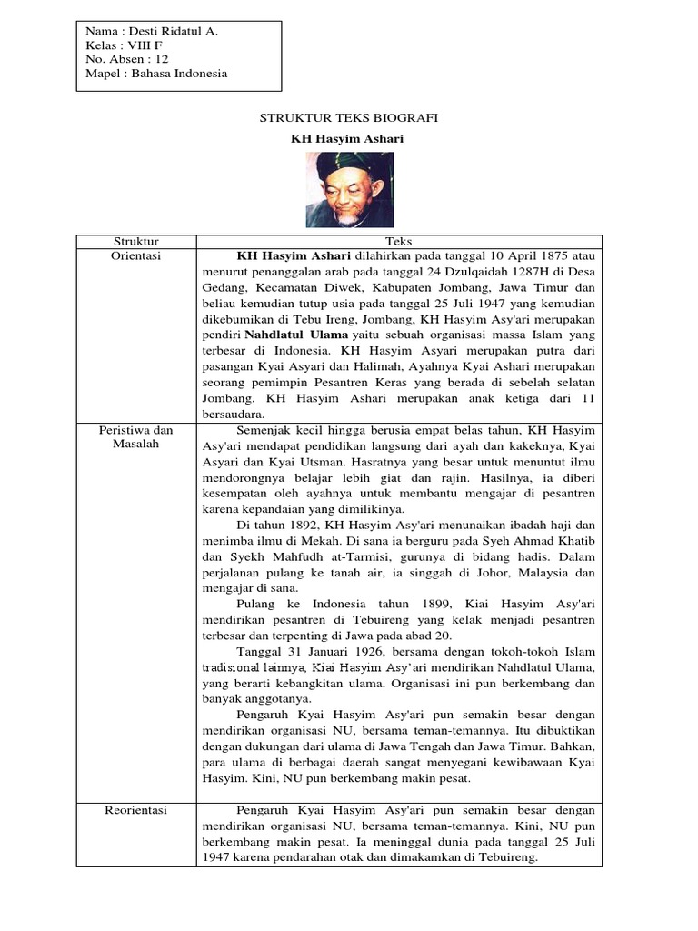 Struktur Teks Biografi Jelaskan Sebutkan Jenis Dan Tujuan