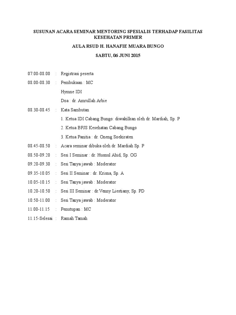 Pada artikel sebelumnya kita telah membahas mengenai Contoh Susunan Kepanitiaan Pernikahan jadi dikesempatan kali ini penulis akan membagikan salah satu artikel dengan sub judul yang membahas tentang Pengertian Susunan Acara Fungsi Susunan Acara Contoh Susunan Acara. Kali ini saya memandu acara seminar online yang merupakan acara formal. Kiranya acara istirahat kami cukupkan sekian saja dan marilah kita lanjutkan acara berikutnya Yaitu Seminar.