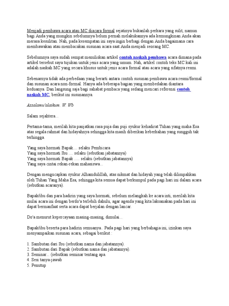 Begini Contoh Naskah Mc Semi Formal Acara Seminar Nasional Oleh Tias Tanjung Wilis Halaman 1 Kompasiana Com Pdf