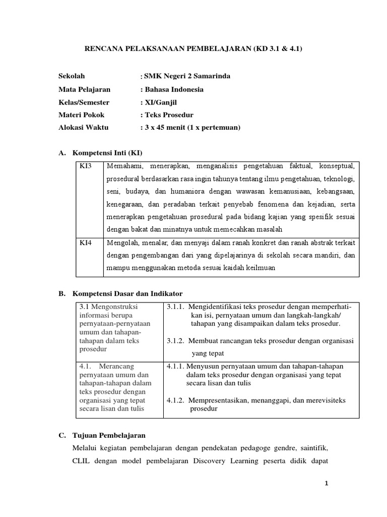 Rpp Kd 3 1 Dan 4 1 Teks Prosedur