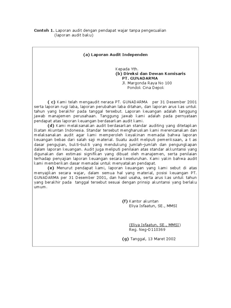 Contoh Laporan Audit Independen Wajar Tanpa Pengecualian Mengaudit adalah sebuah pekerjaan yang bisa dibilang merumitkan apalagi jika menyoal tentang audit sebuah perusahaan besar. Opini audit untuk pembahasan kali ini kami akan mengulas mengenai opini audit yang dimana dalam hal ini meliputi jenis dan tahap nah agar lebih dapat memahami dan dimengerti simak ulasan pos pos terbaru. Adanya pernyataan opini audit internal pada hakikatnya merupakan wujud berjalannya fungsi assurance audit internal yang efektif.