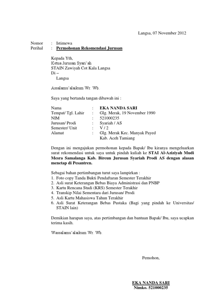 Contoh Surat Permohonan Pindah Kuliah Ke Dekan Dapatkan Contoh